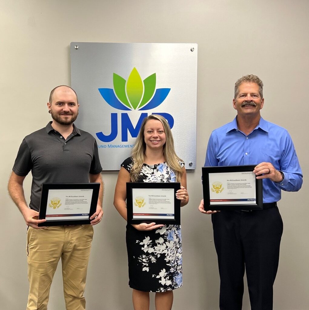 In May 2025, Juno team members Kevin Hall, P.E., PMP, Nikki Roberts, and Jesse Hall received the NA-90 NNSA Award of Excellence for the CREST Accelerator Movement System prototype. The CREST Integrated Project Team was recognized for innovatively supporting the project conceptual design by collaborating with industry to develop a prototype of the AMS that is being designed into the CREST project. This effort demonstrates how the project applied Build SMART principles of innovation and risk-informed decision-making to influence the design of the project.